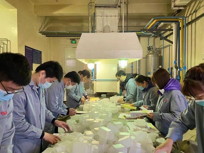 在聽取化工廠黨總支書記王金華、副廠長(zhǎng)王云祥、安全總監(jiān)李川介紹產(chǎn)品、貼簽安全相關(guān)事項(xiàng)后。總部團(tuán)員青年們穿好工作服來到車間,經(jīng)過2小時(shí)的勞動(dòng),共貼簽6000個(gè),為企業(yè)生產(chǎn)貢獻(xiàn)一份綿薄之力。