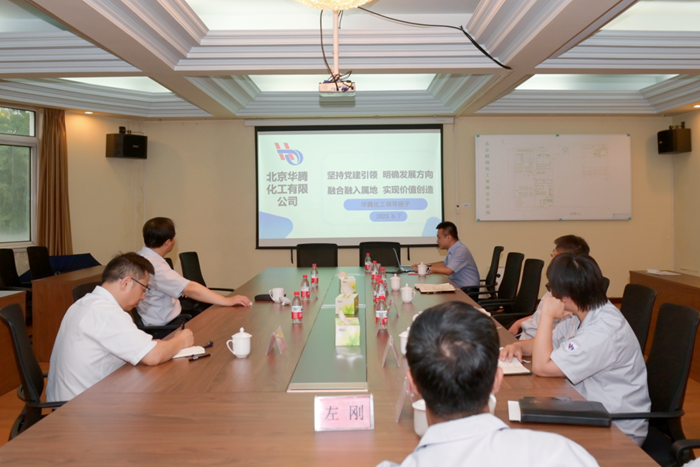 北京化工集團黨委副書記、總經理陳宇以《學習思想、感悟偉力、汲取力量,堅定信心推進高質量發展,加快上市步伐》為主題在華騰新材講專題黨課,市委第22巡回指導組副組長方子虹,組員李鈺婷出席,華騰新材總經理呂銘華主持。