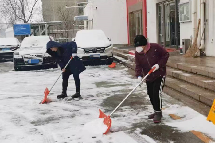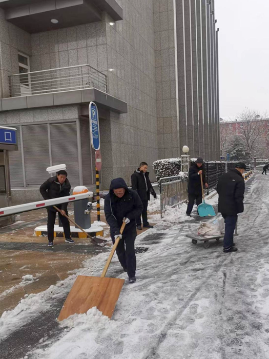剛到單位的干部職工,紛紛拿起掃帚、鐵鍬,加入到掃雪除冰大“會(huì)戰(zhàn)”的隊(duì)伍中。大家齊心協(xié)力、現(xiàn)場(chǎng)一片熱火朝天,干凈整潔的道路很快清掃出來(lái),保證了干部職工出行安全。