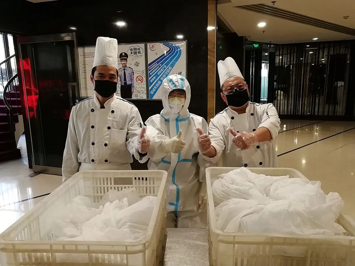 此次專項任務最關鍵的環節,就是送餐和收納生活垃圾。接送餐飲,收納垃圾都在每個房間的門口。當送餐和收納垃圾這一艱巨任務擺在大家面前的時候,東方賓館的同志們沒有退縮,紛紛要求接下這一任務,特別是共產黨員、餐飲部經理周麗麗,共產黨員、辦公室主任張艷紅,強烈要求主動上崗。賓館黨支部考慮到周麗麗專業性更強,最終決定由她來負責每天的送餐和生活垃圾收納工作。