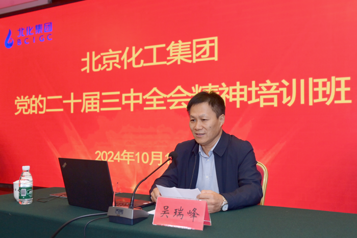 10月10日至12日,北京化工集團黨委舉辦黨的二十屆三中全會精神廠處級干部培訓班。黨委書記、董事長陳宇作培訓總結,黨委副書記吳瑞峰作開班動員,黨委常委、組織部部長劉士義主持培訓。