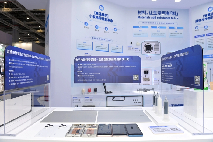 “高端新材料”展區(qū)錨定分子級(jí)科技能力,定義產(chǎn)業(yè)未來(lái),聚焦智能家居生活及新能源領(lǐng)域,突出汽車新能源應(yīng)用場(chǎng)景,展示聚氨酯膠粘劑、合成PAE、改性工程塑料等化工新材料的最新發(fā)展成果。