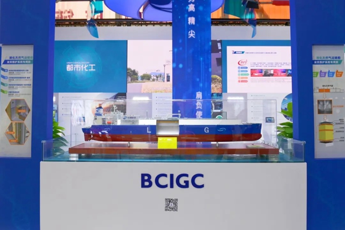 而在展位正中的前沿位置,一只2米見長的LNG船模型引得觀展者紛紛駐足,由集團所屬華騰新材公司突破“卡脖子”技術生產的液貨圍護系統專用膠,逐漸在有造船工業“皇冠上的明珠”之稱的LNG船上得到廣泛運用。