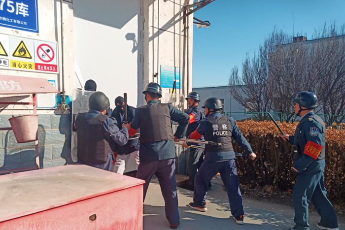 華騰科技園作為全市應(yīng)急物資、化工產(chǎn)品重要集散地,全國兩會前夕,華騰化工從安全保衛(wèi)、安全管理、信訪穩(wěn)定等多個方面進行了全面部署和系統(tǒng)摸排。領(lǐng)導(dǎo)班子成員帶頭到重點部位安全檢查;組織公司中控室人員進行“周界防侵入系統(tǒng)”等專業(yè)培訓(xùn);對易制爆庫房進行封閉管理并張貼封條,聯(lián)合屬地派出所組織開展甲類庫反恐應(yīng)急演練;認真落實集團信訪維穩(wěn)、接訴即辦相關(guān)工作要求,切實將安全保穩(wěn)定工作落實落地。